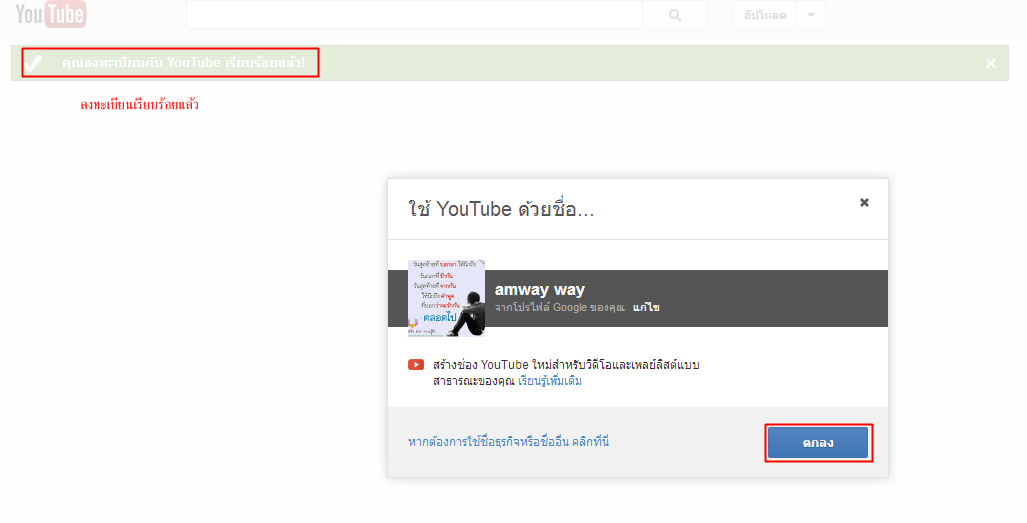 4. เสร็จแล้วก็จะขึ้นข้อความว่า คุณได้ลงทะเบียนเรียบร้อยแล้ว คลิกปุ่มตกลง