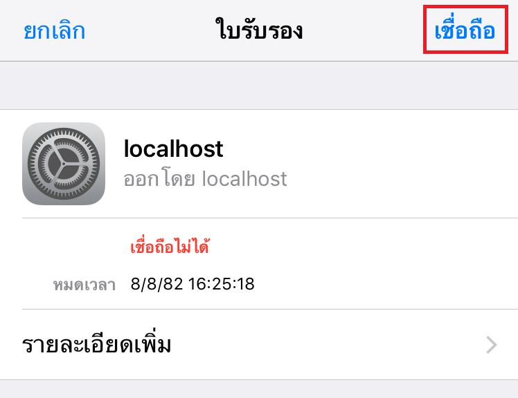 5. จากนั้นให้กดที่ "เชื่อถือ" ด้านบนขวา