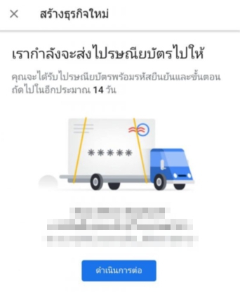 10. ยืนยัน ที่ตั้งของธุรกิจ ผ่านการรับไปรษณียบัตร Postcard